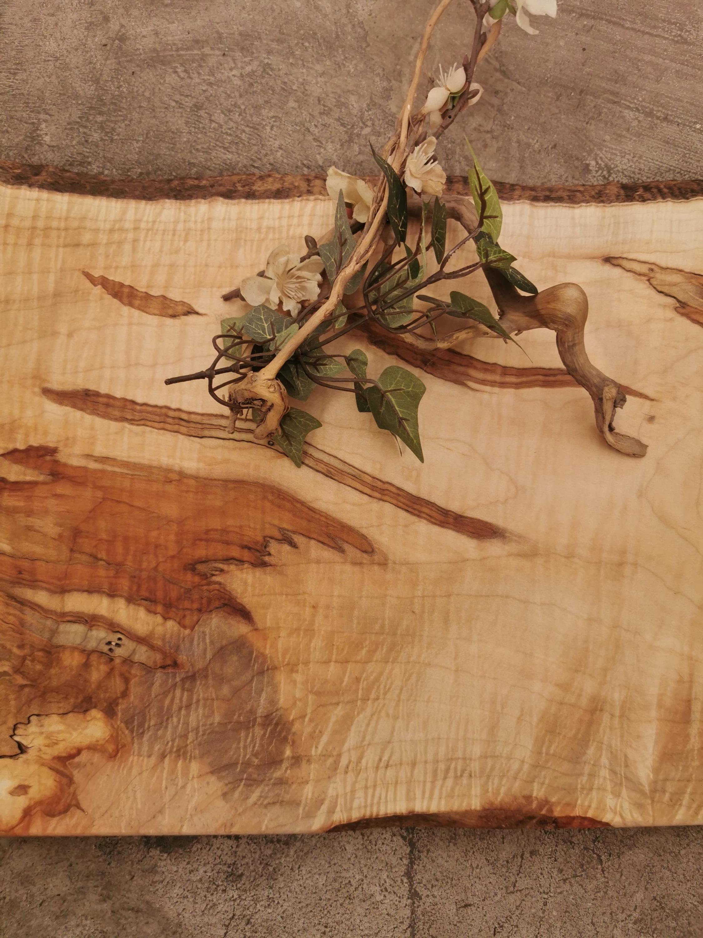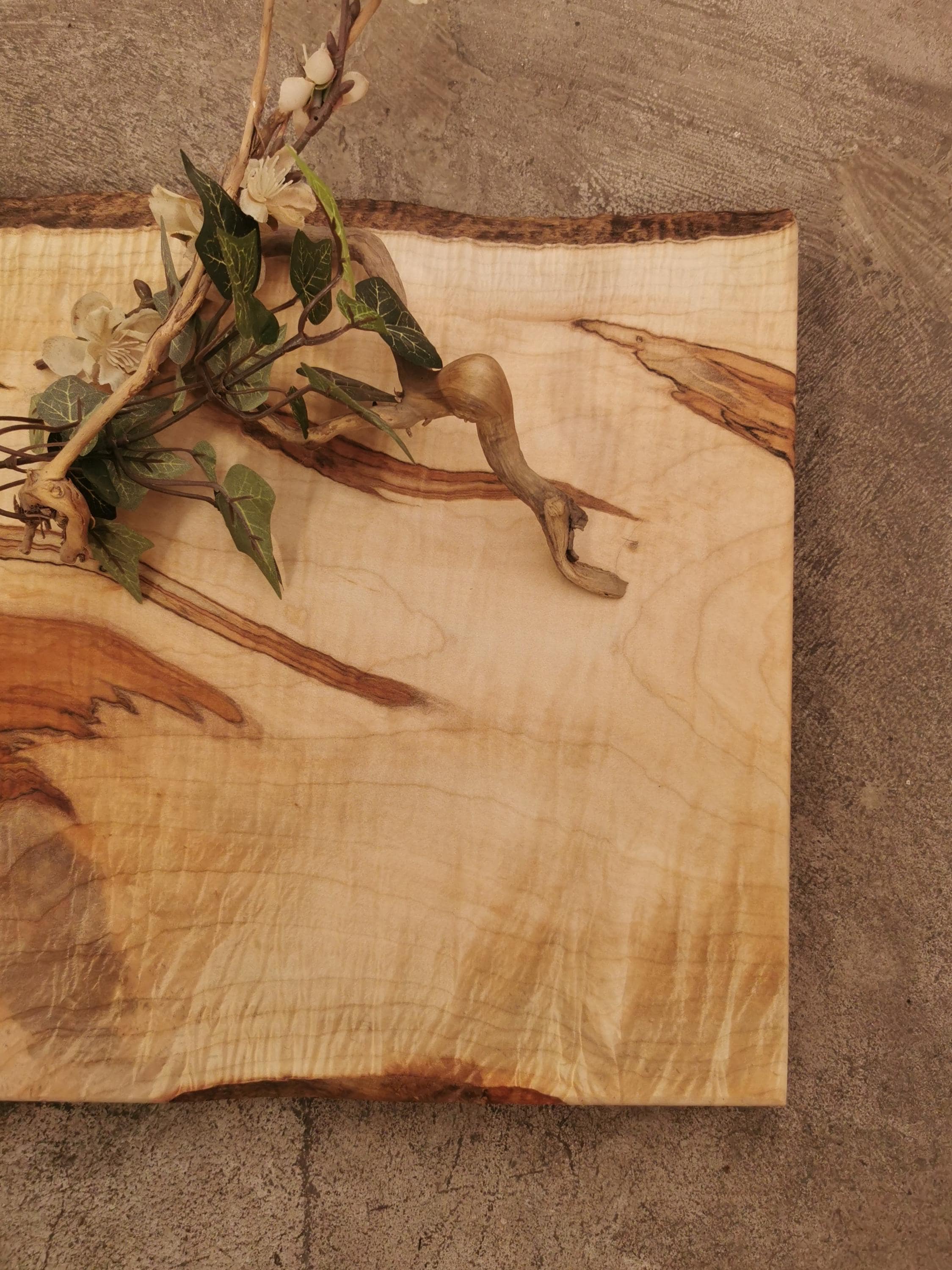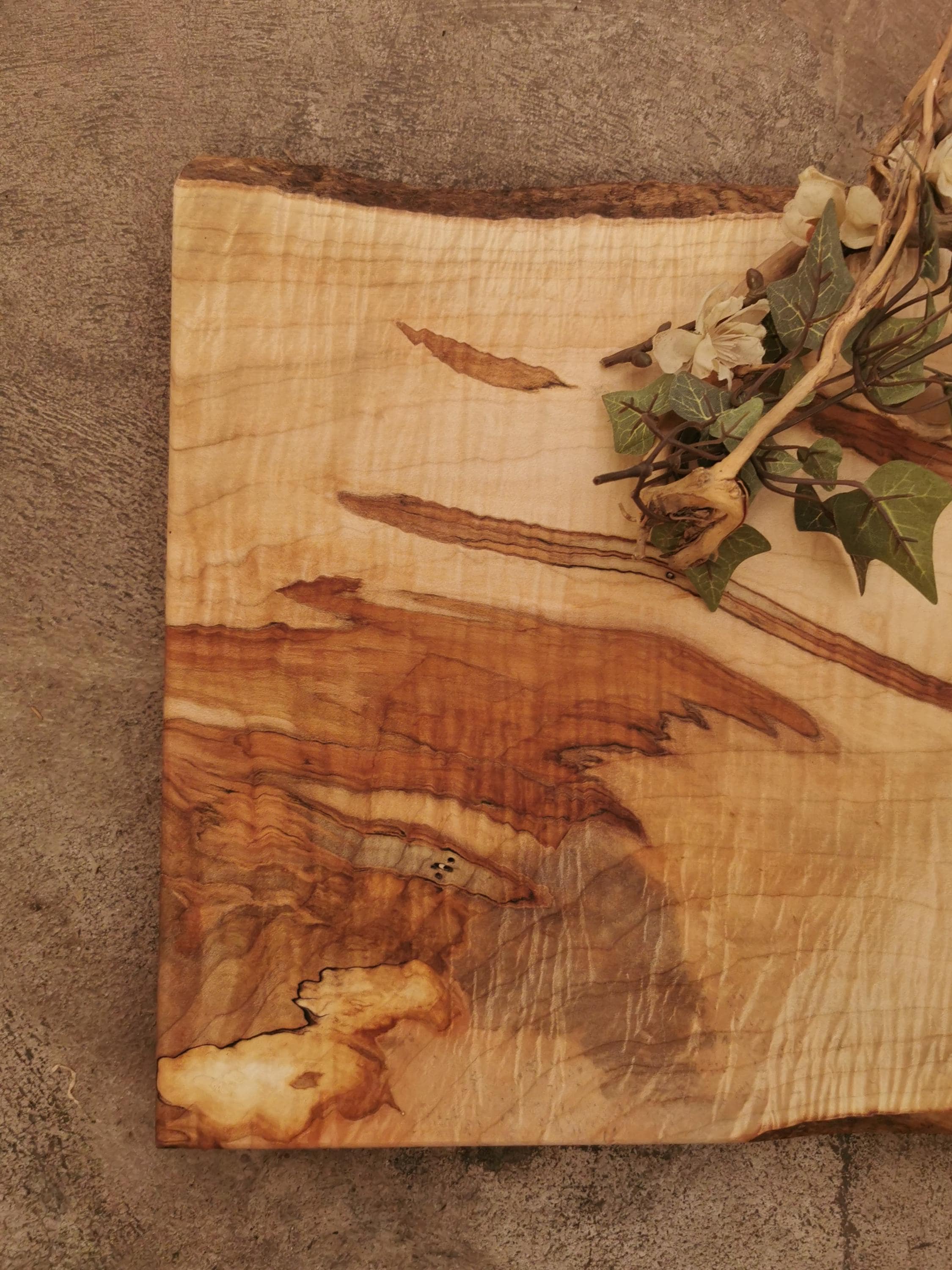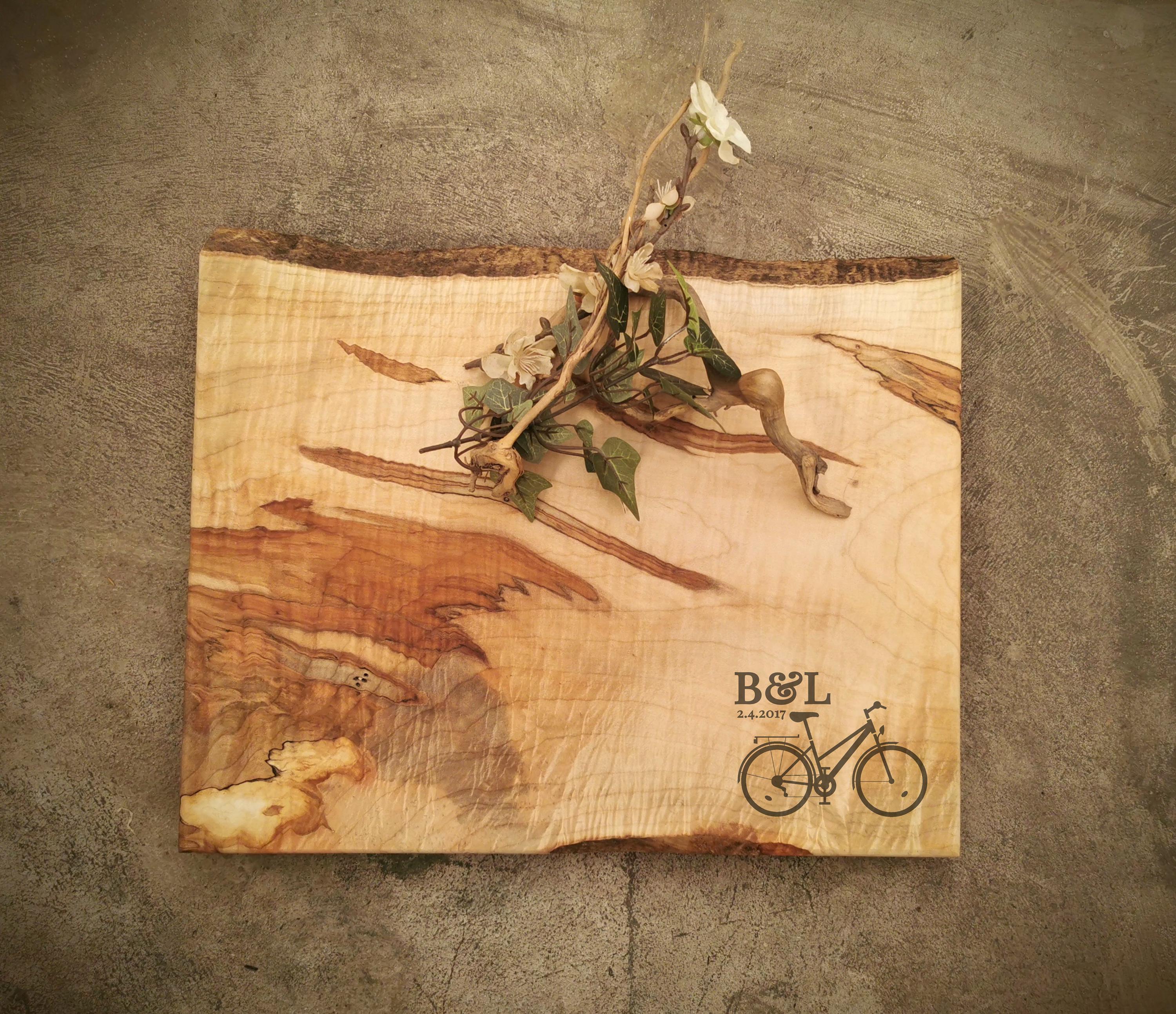 PERSONALIZED LIVE EDGE MAPLE CHEESE BOARD with FEET and OSO WOOD BUTTER shown with photoshopped BICYCLE design. We can modify the design or substitute with any laser engraved personalization of your choice (see our other personalized board examples for ideas).