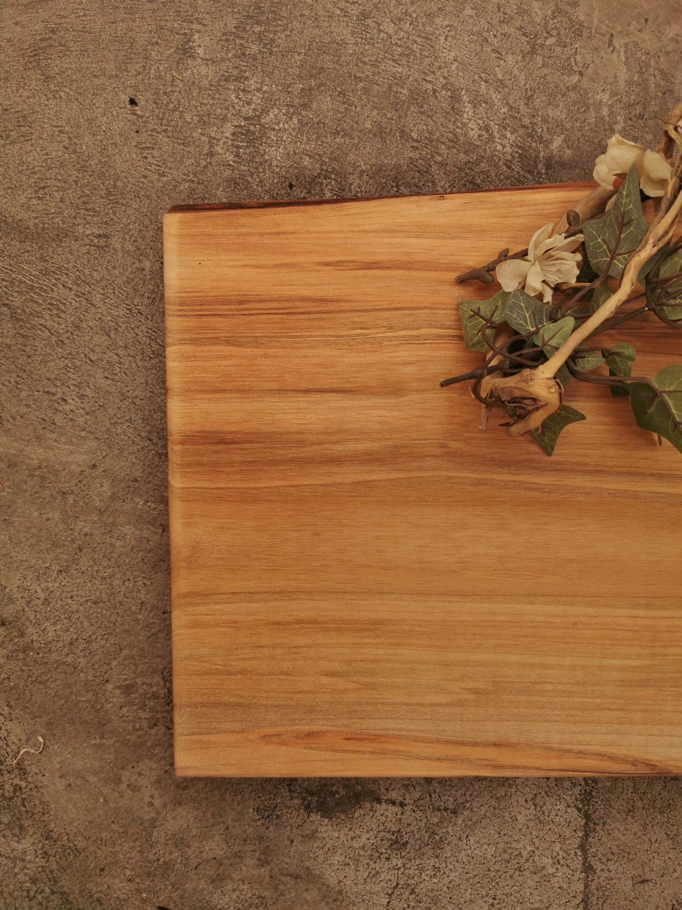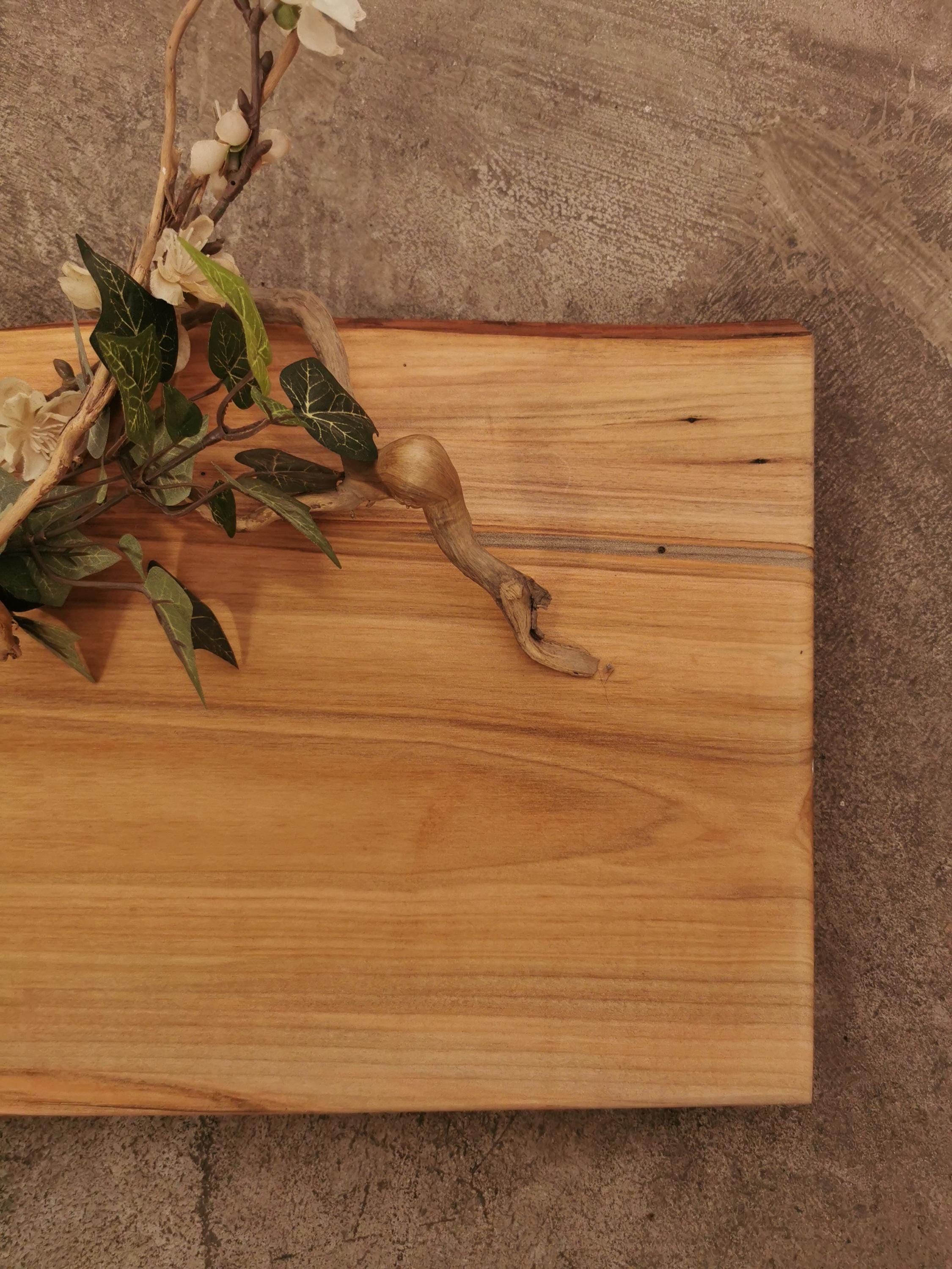 All of our handmade cutting boards are made from one solid piece of wood, not laminated or glued together. Our boards are perfectly imperfect with lots of character.