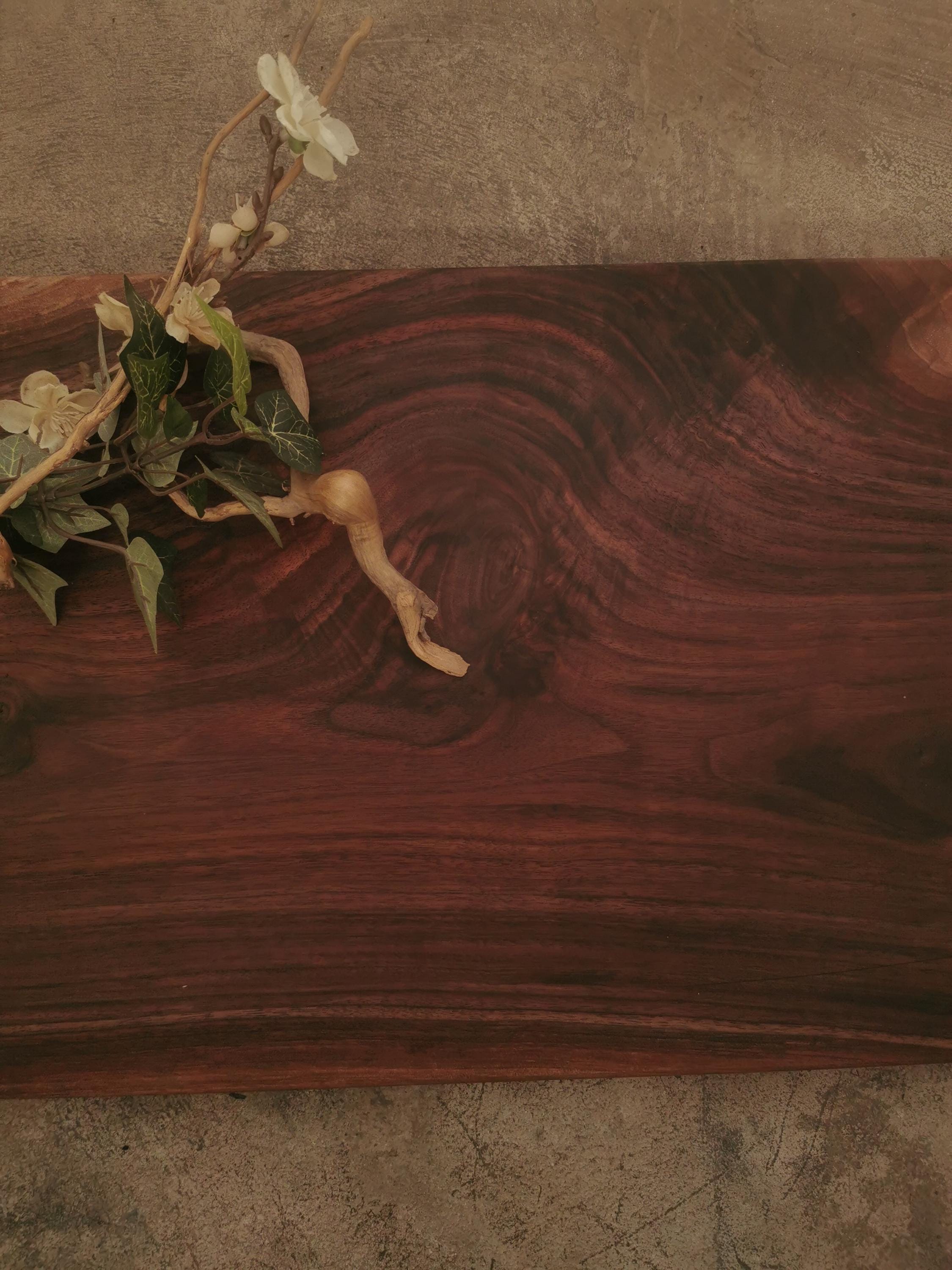 All of our handmade cutting boards are made from one solid piece of wood, not laminated or glued together. Our boards are perfectly imperfect with lots of character.