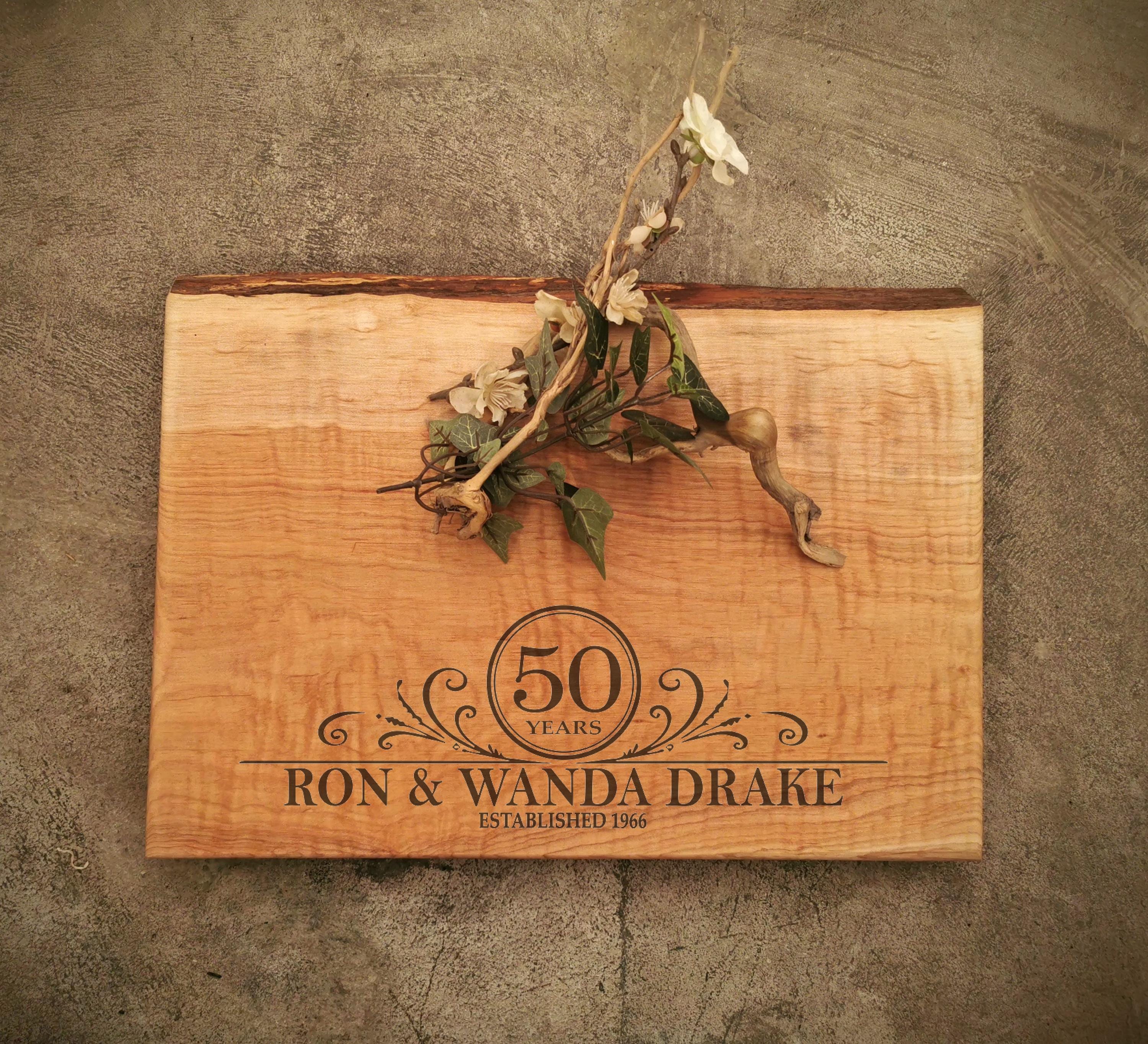 LARGE PERSONALIZED LIVE EDGE MAPLE CHEESE BOARD with FEET and OSO WOOD BUTTER shown with photoshopped INITIAL, NAMES and DATE. We can modify the design or substitute with any laser engraved personalization of your choice (see our other personalized board examples for ideas).