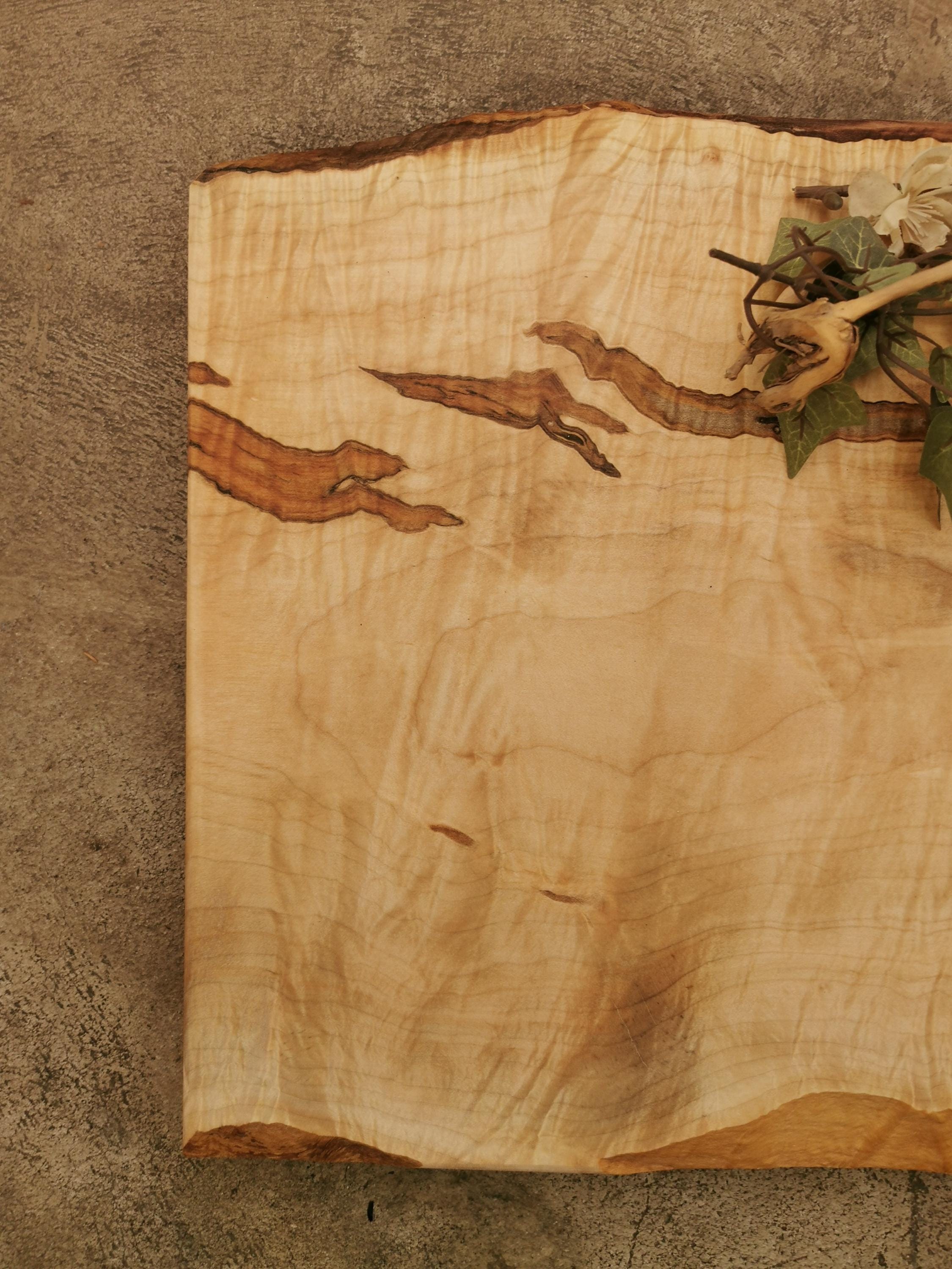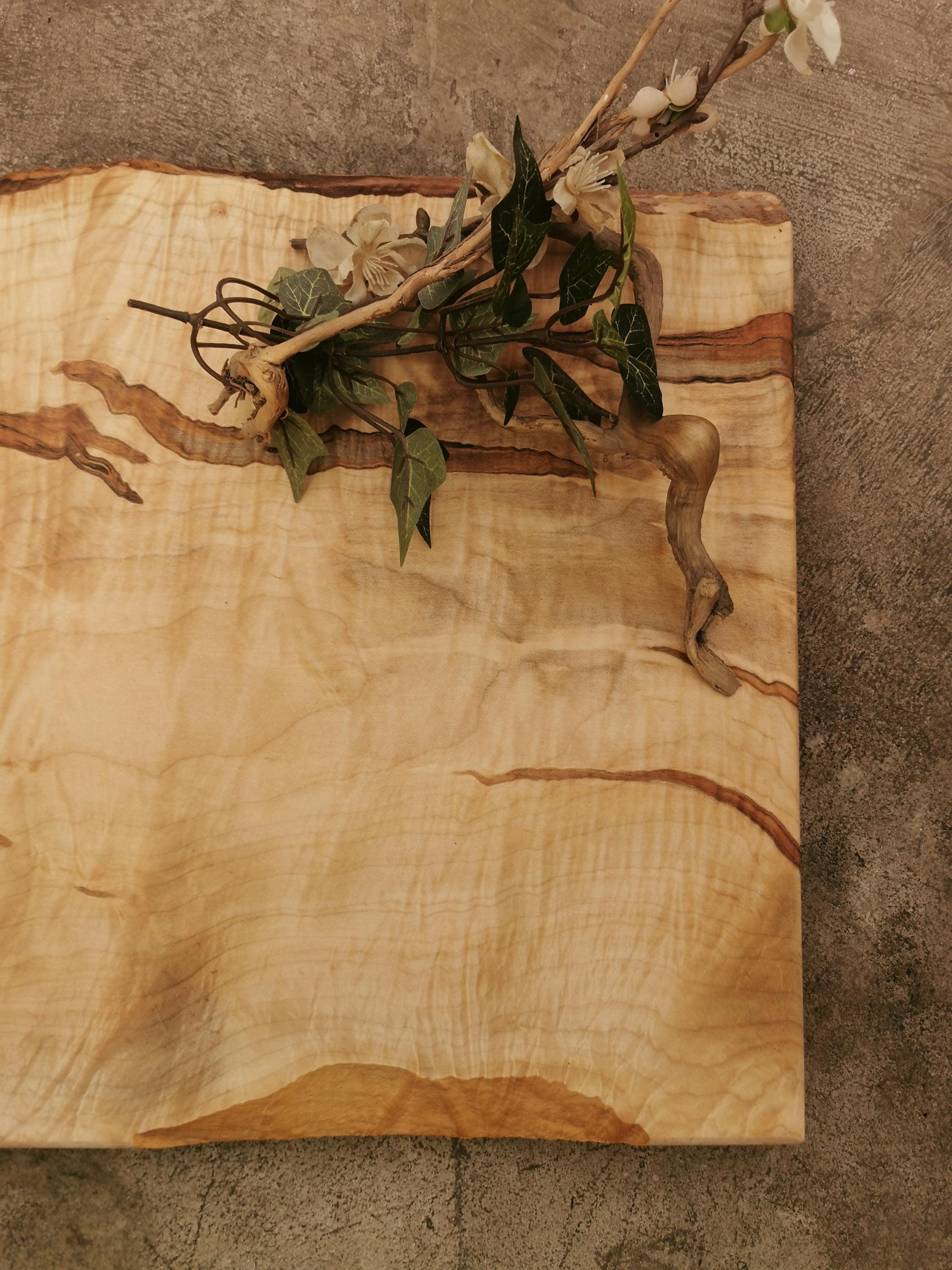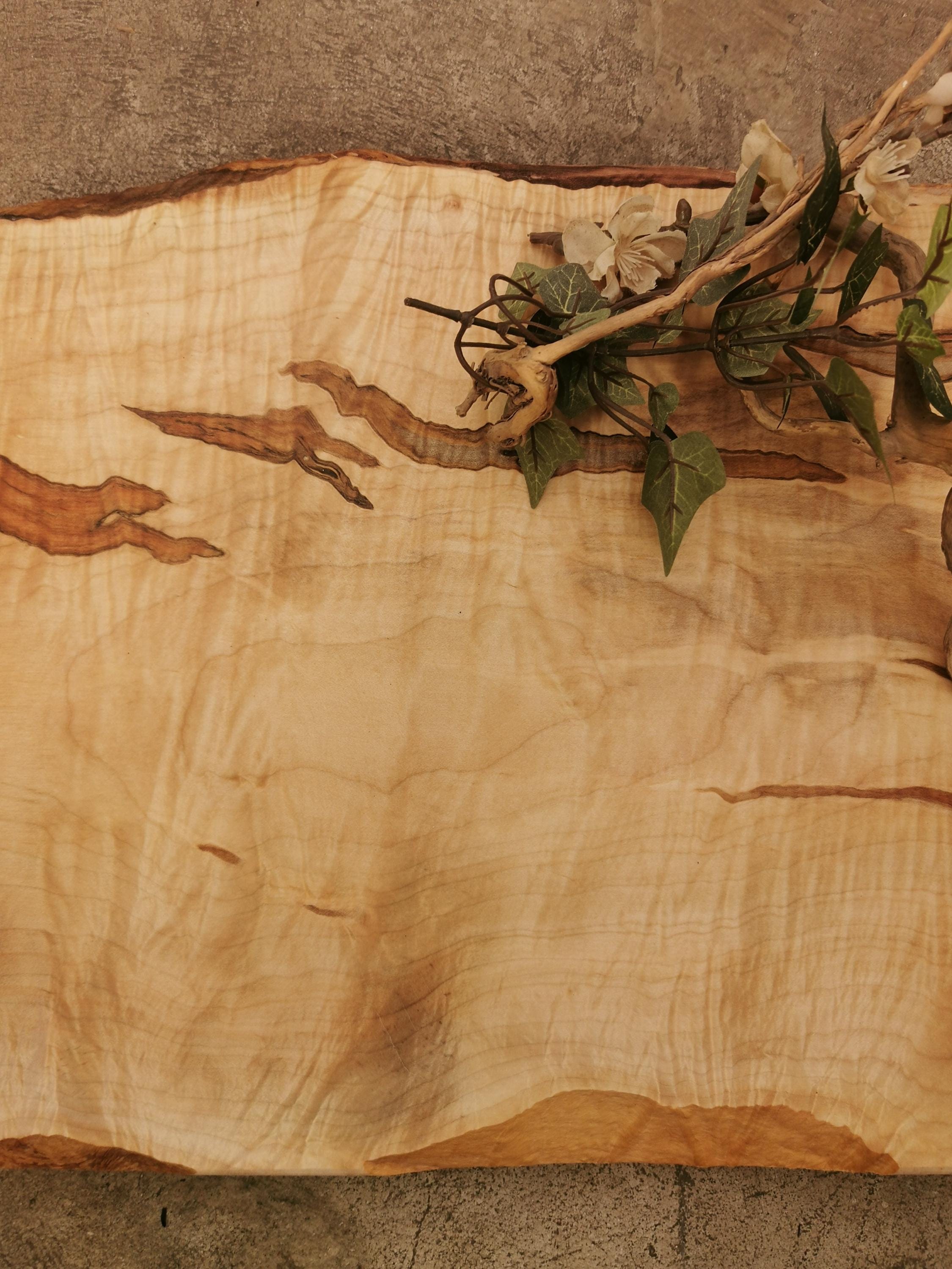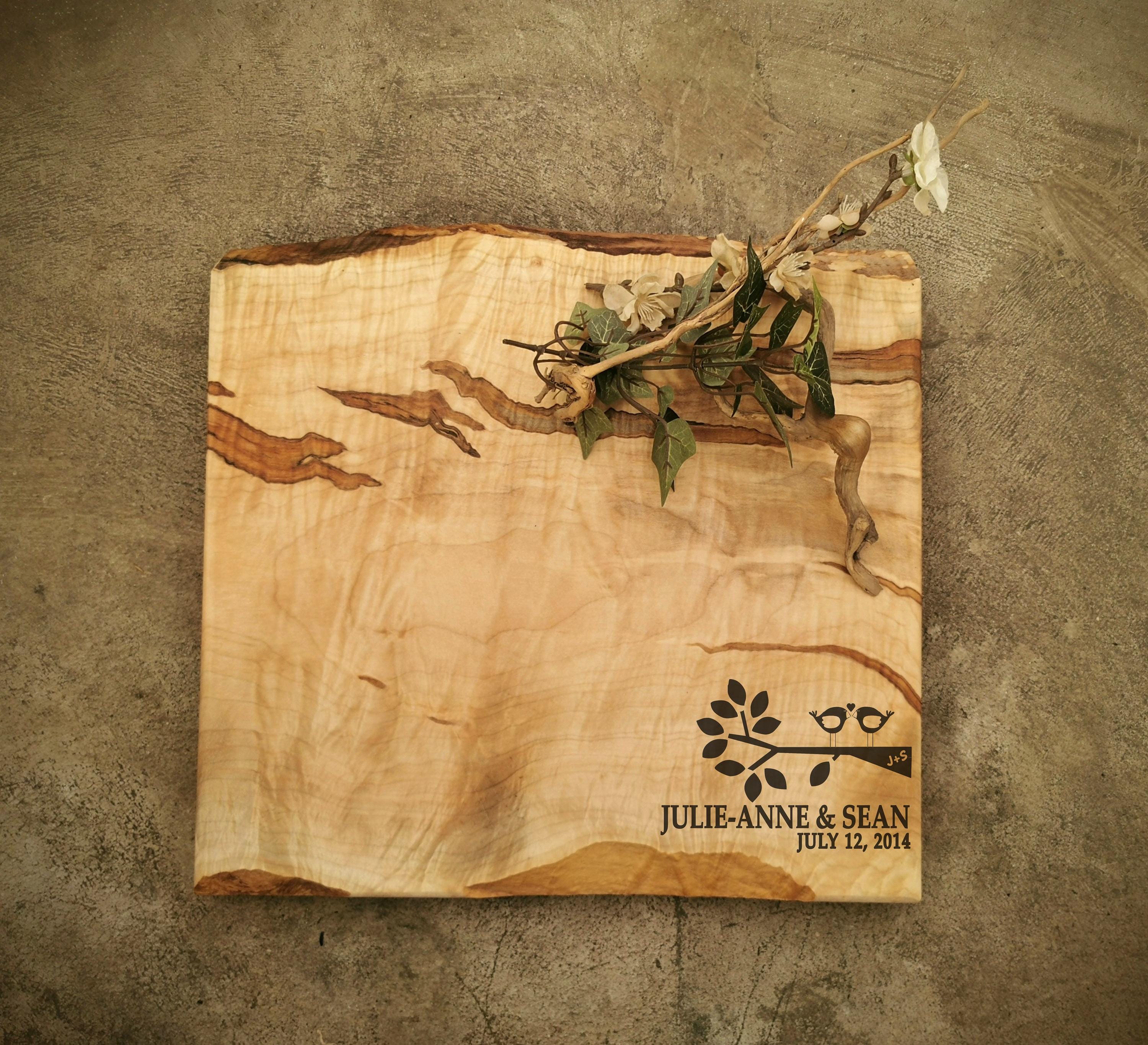 PERSONALIZED LIVE EDGE MAPLE CUTTING BOARD shown with photoshopped BIRDS ON A BRANCH design. We can modify this design upon request or provide us with a link for one of our other designs that you would prefer.