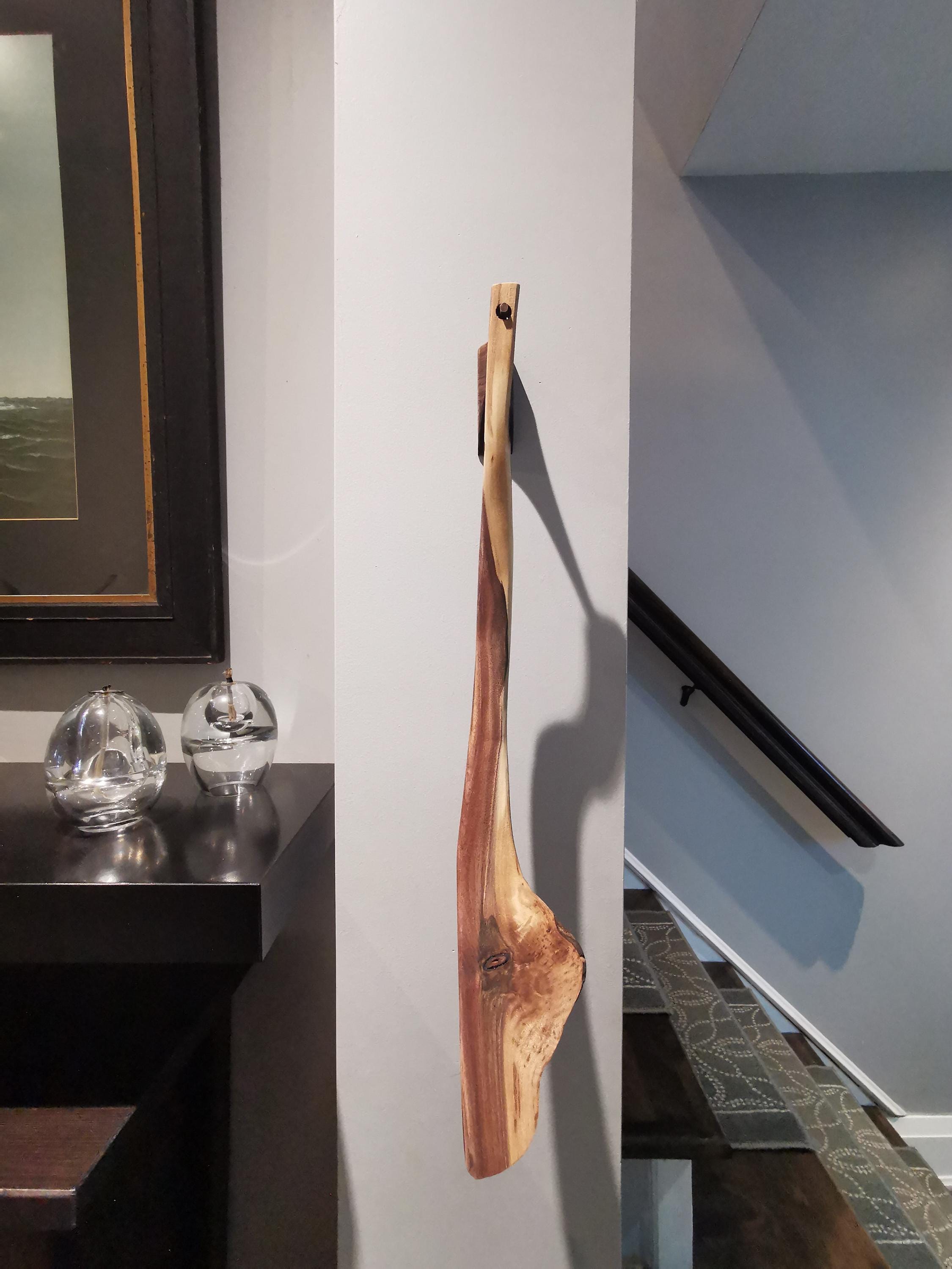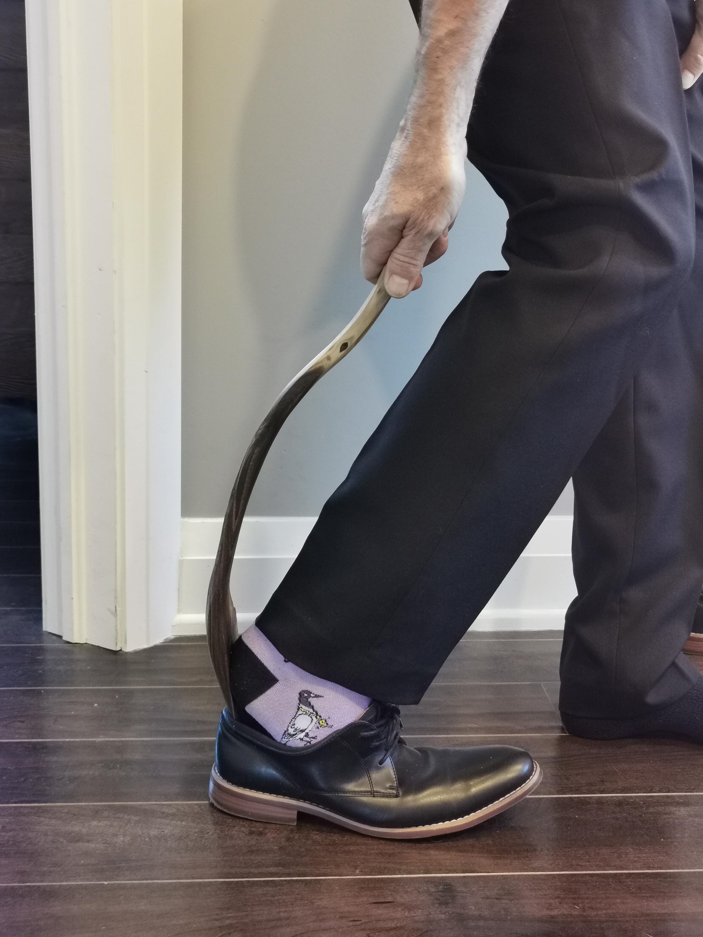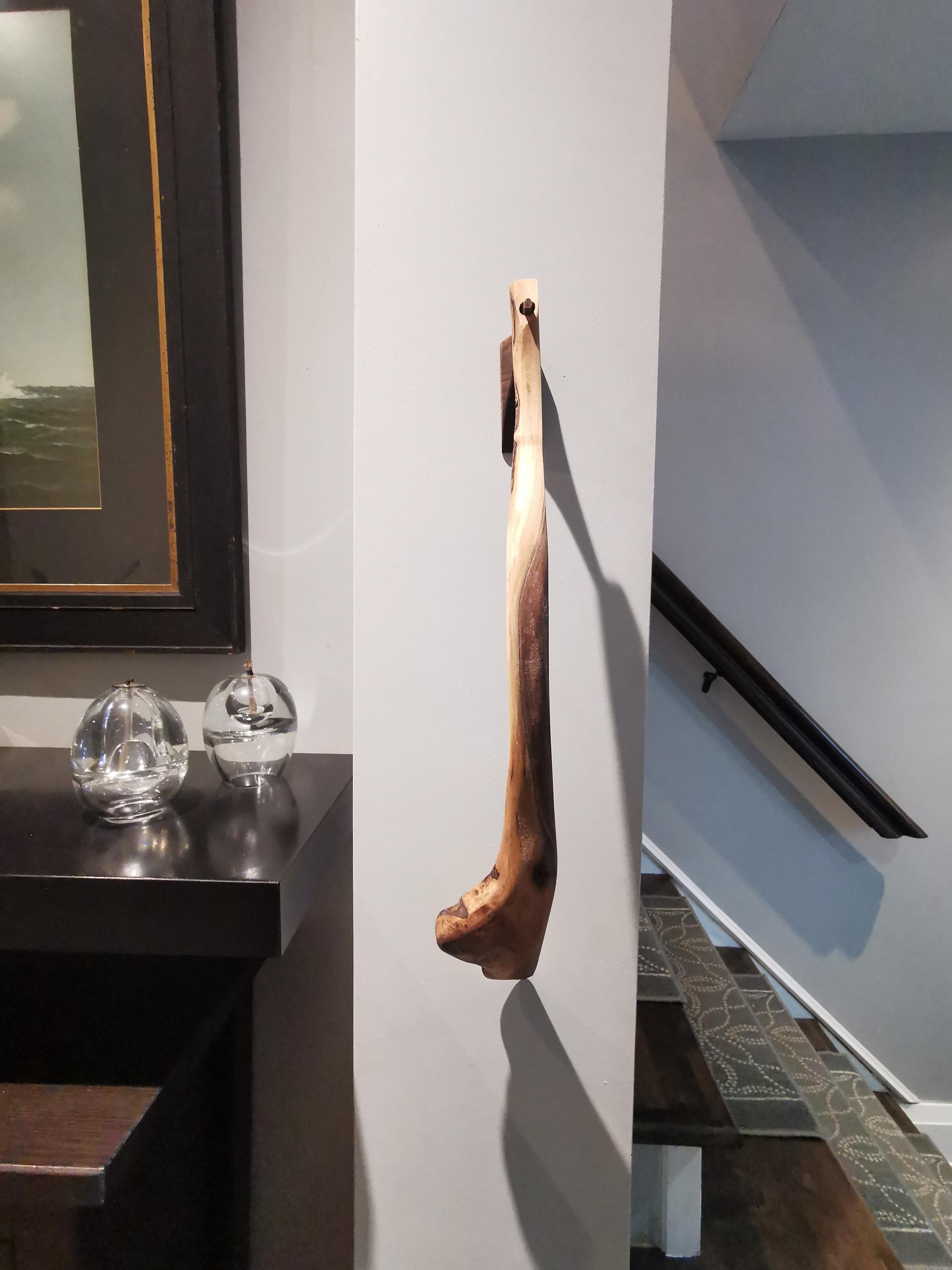 Handmade walnut shoehorn, full of character and natural beauty. The curve in this one feels like you're changing gears when you use it. Includes a handmade wooden holder for hanging on the wall, a beautiful sculptural piece. All of our products are made from ethically and locally sourced lumber and crafted by hand in our workshop.