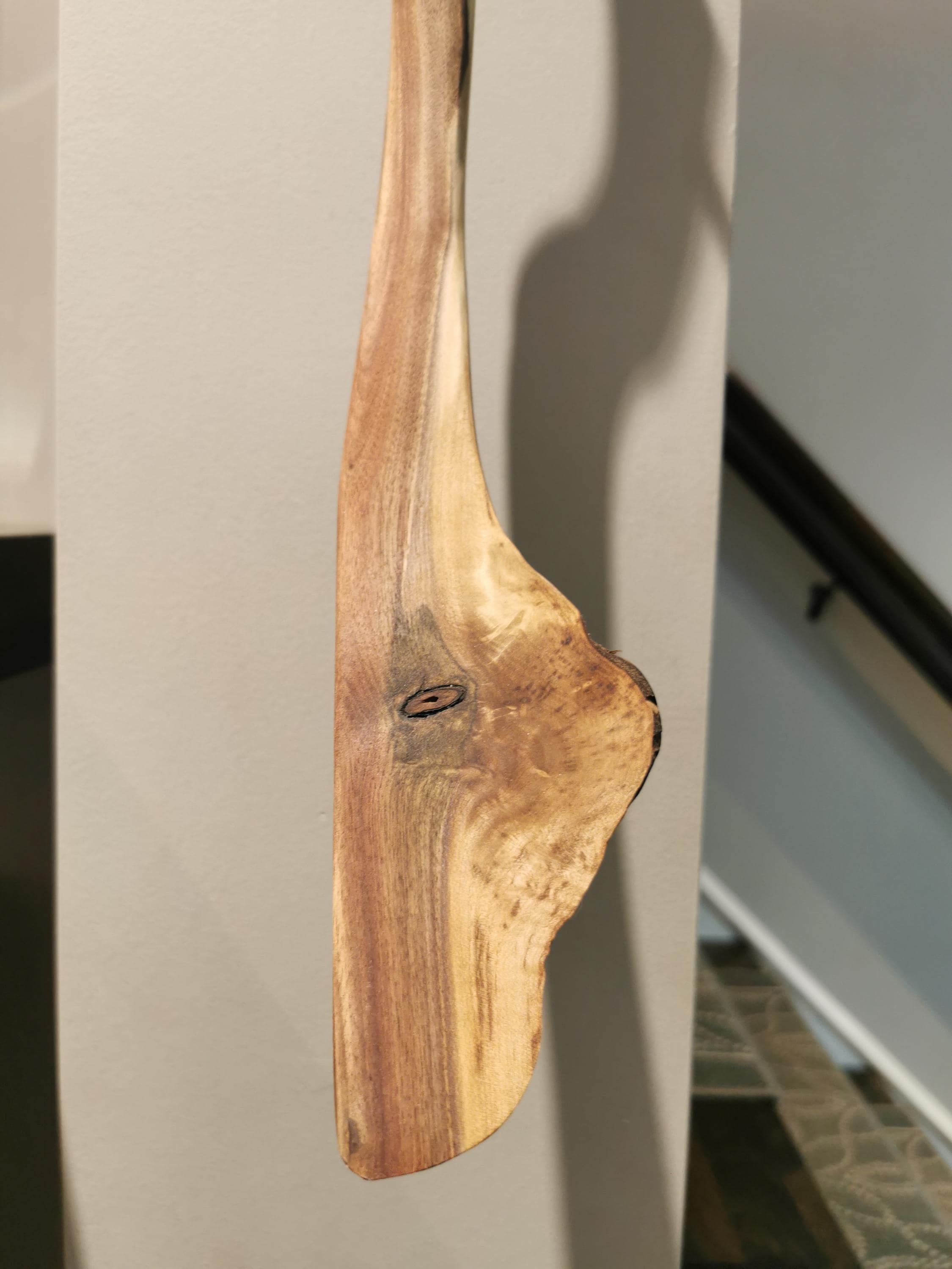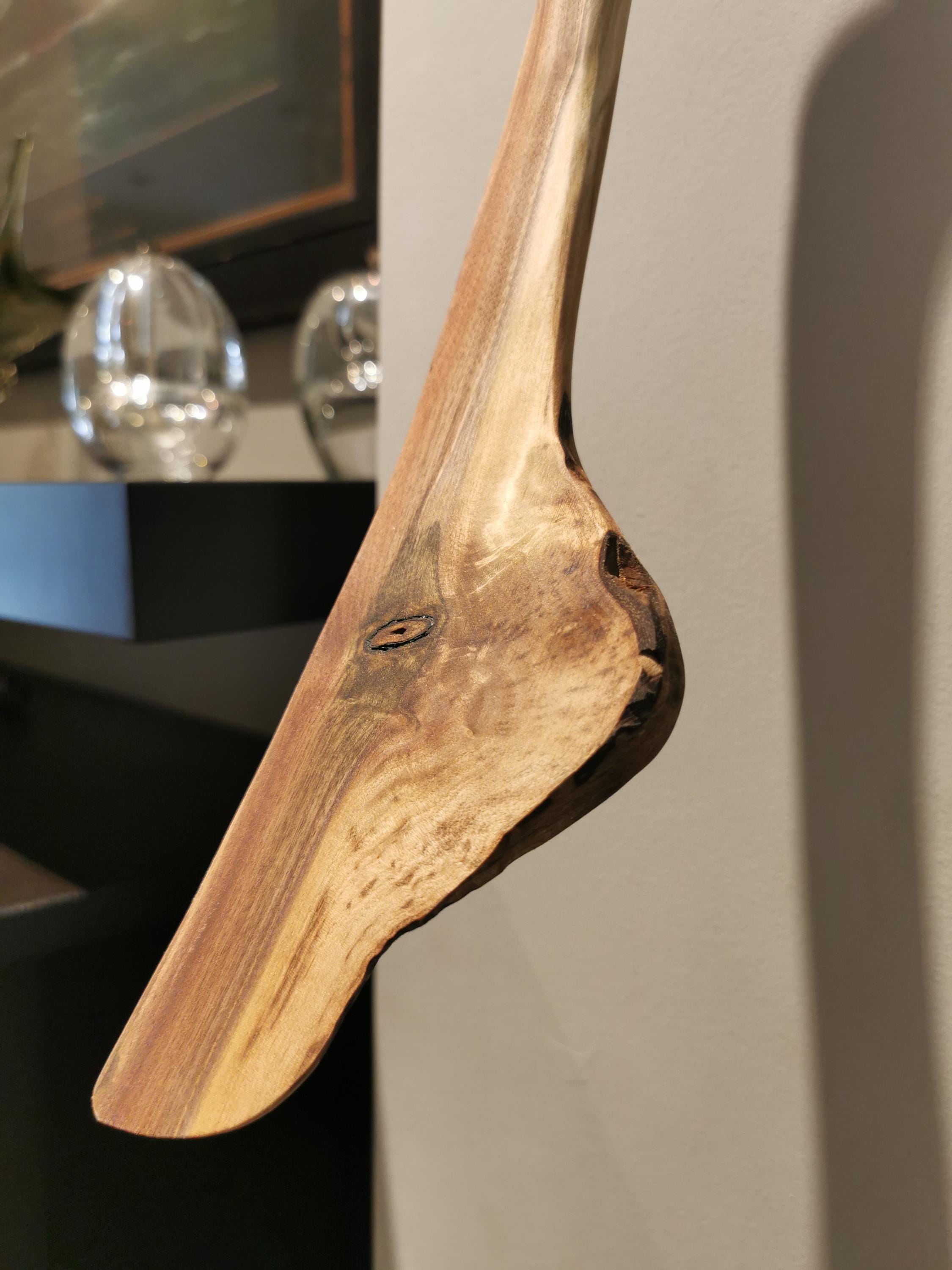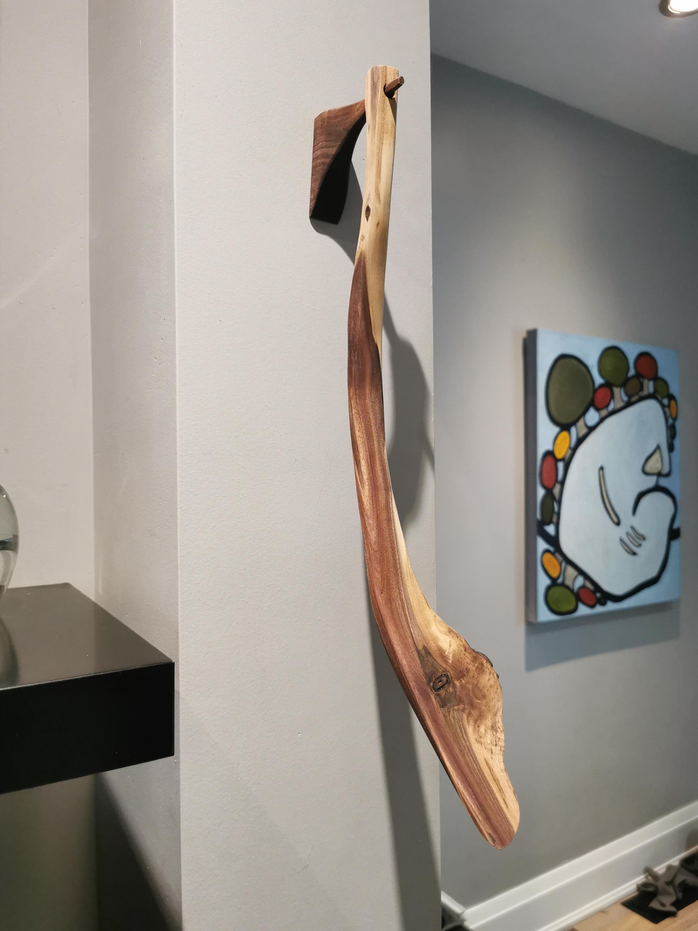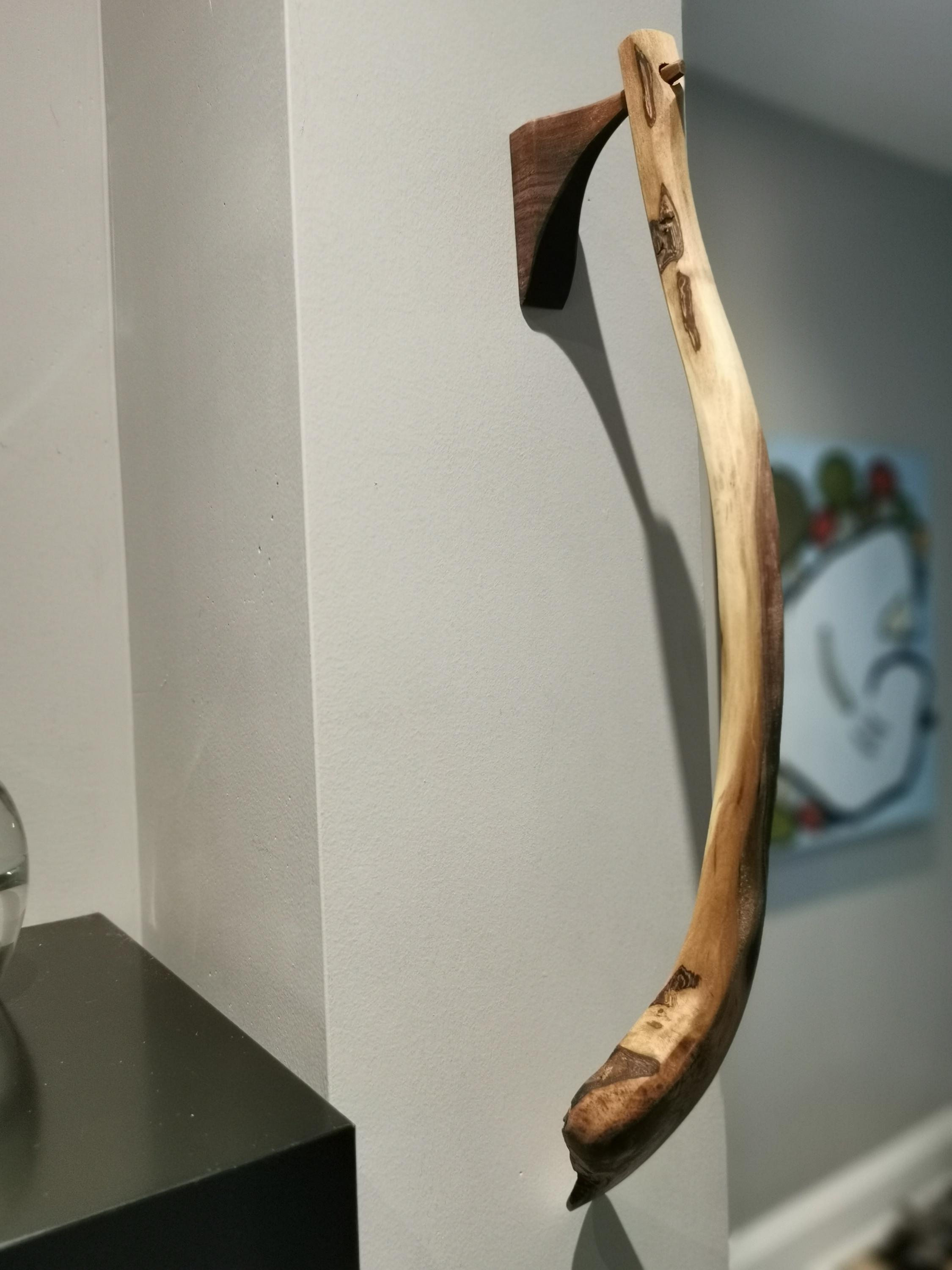 Handmade walnut shoehorn, full of character and natural beauty. The curve in this one feels like you're changing gears when you use it. Includes a handmade wooden holder for hanging on the wall, a beautiful sculptural piece. All of our products are made from ethically and locally sourced lumber and crafted by hand in our workshop.