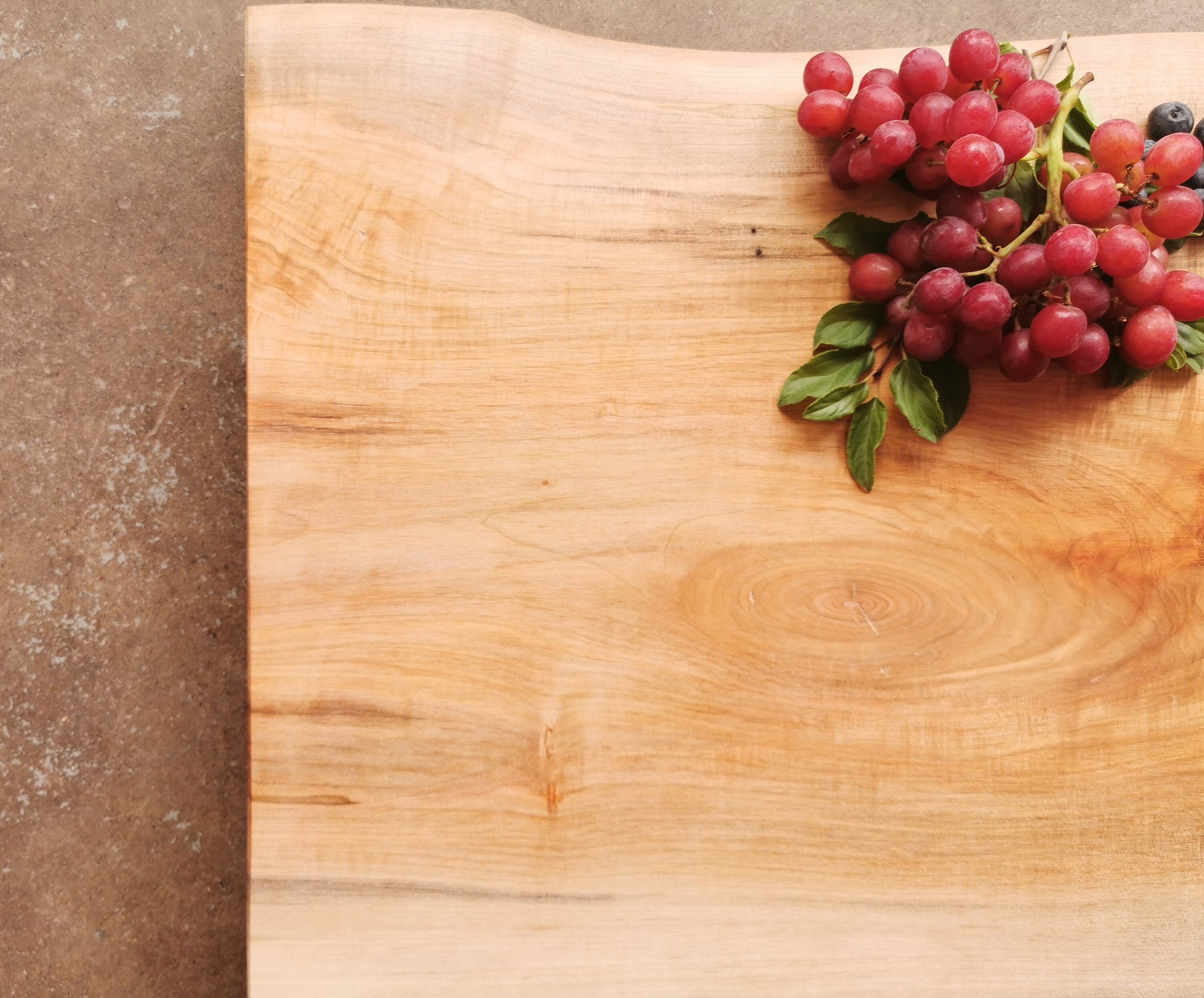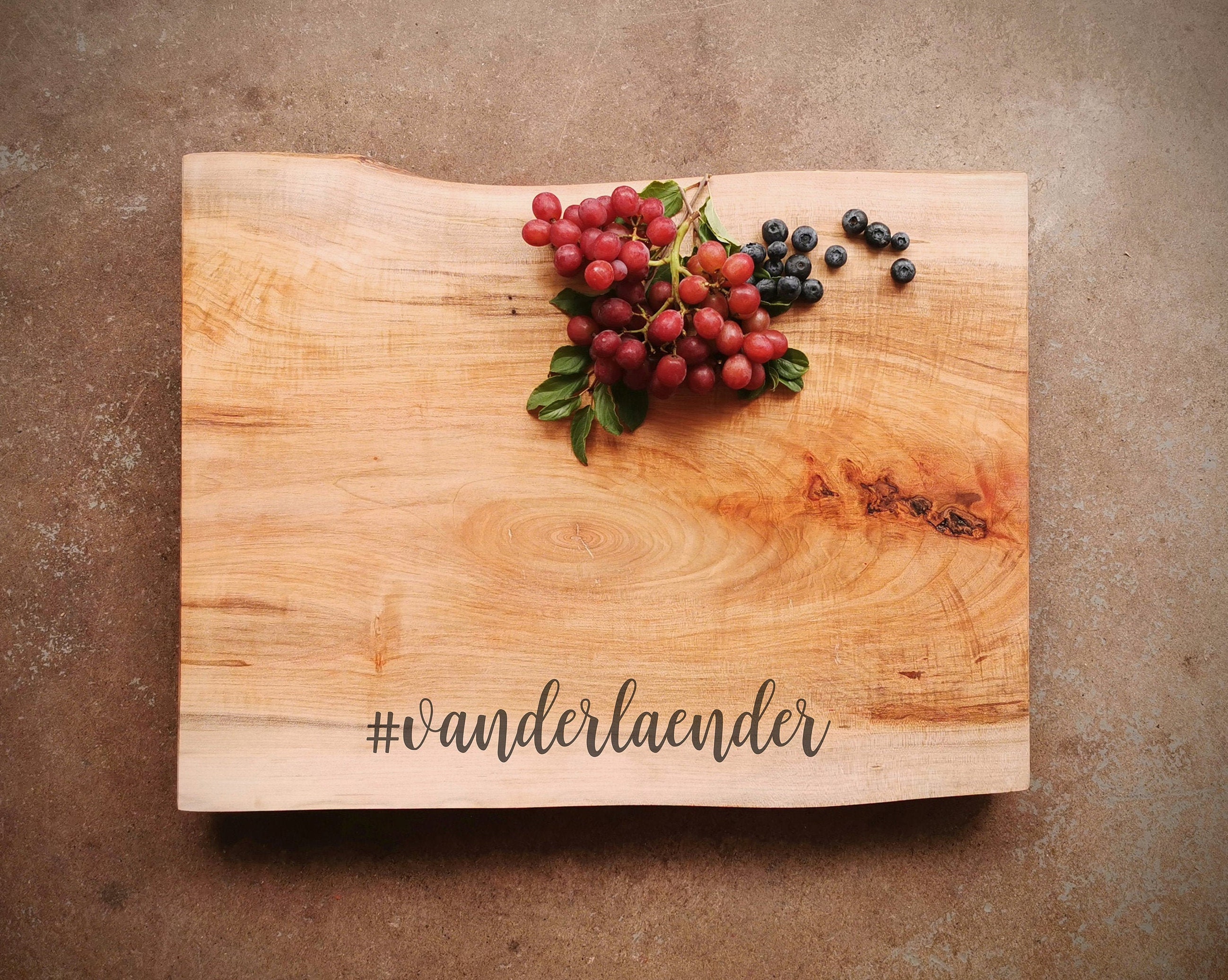 LARGE PERSONALIZED LIVE EDGE MAPLE CUTTING BOARD shown with photoshopped HASHTAG FAMILY NAME design. We can modify this design upon request or provide us with a link for one of our other designs that you would prefer.